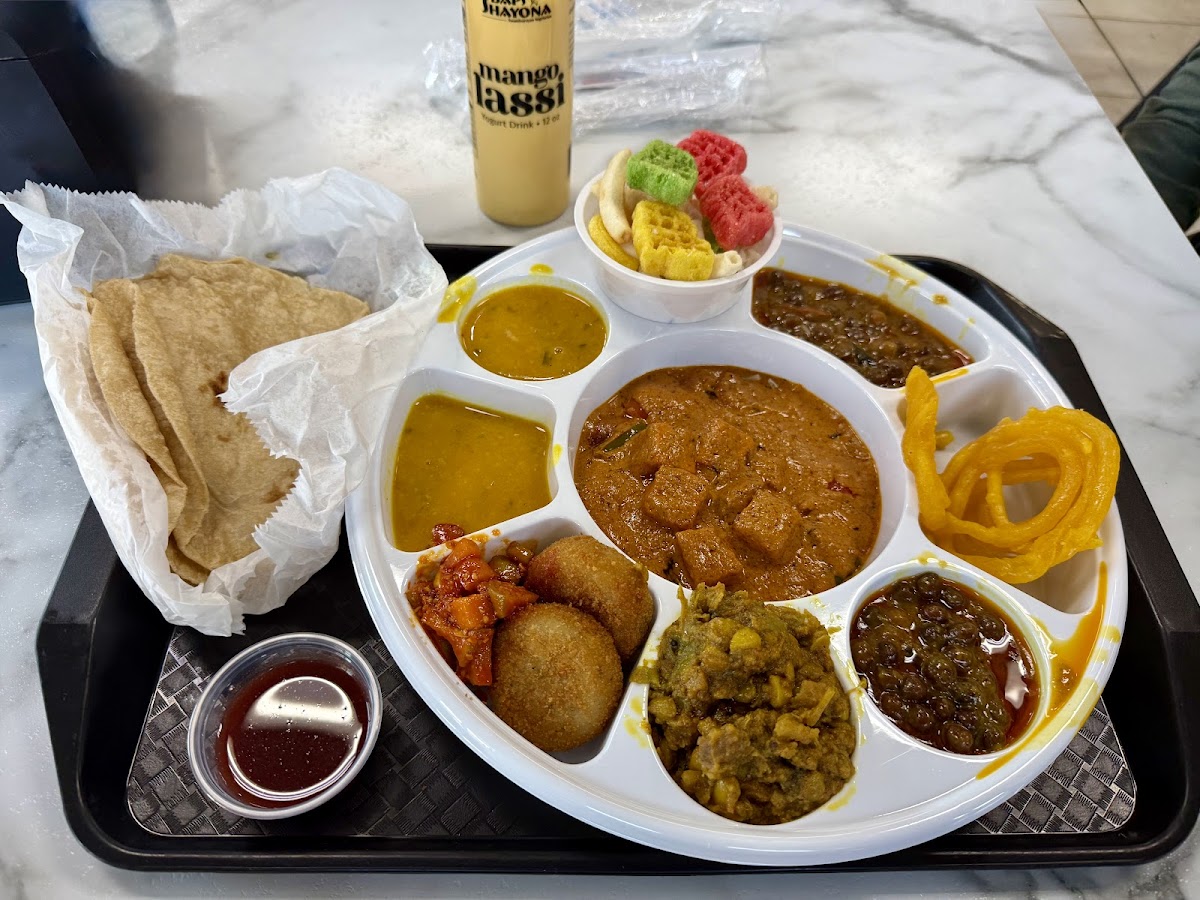 A nice cafe in the BAPS. I loved the thali and dahi vada. The methi poori and aloo dum were delicious. The only thing that can be little improved is the pricing part. The pricing is of the same range if a restaurant price.
